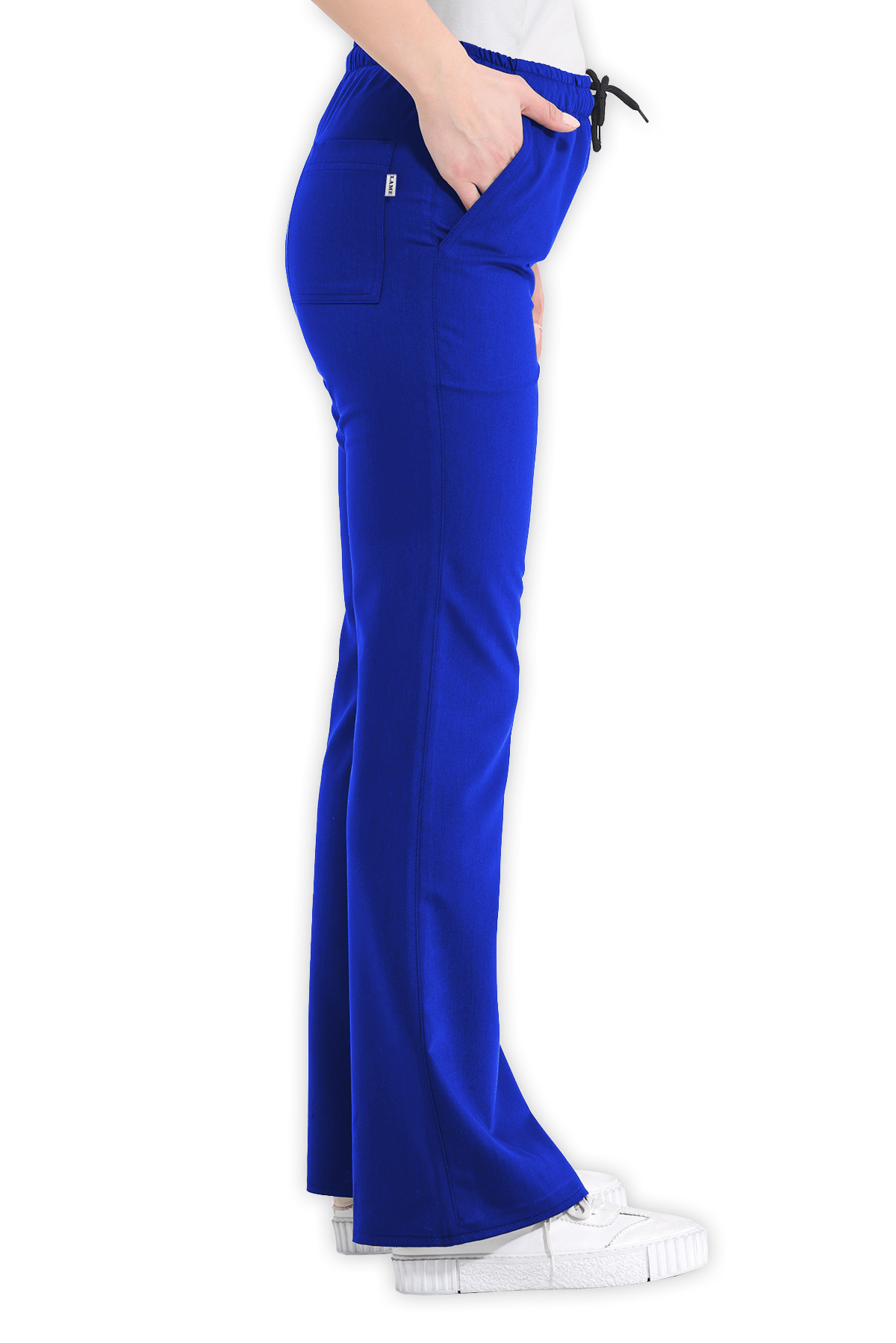Şık Kadın Scrubs Pantolon İspanyol Paça – Saks Mavisi, beli lastikli ve bağcıklı tasarımıyla öne çıkar. 2 yan cep, 1 arka cep ve İspanyol paça kesimiyle sağlık çalışanları için zarif bir görünüm!