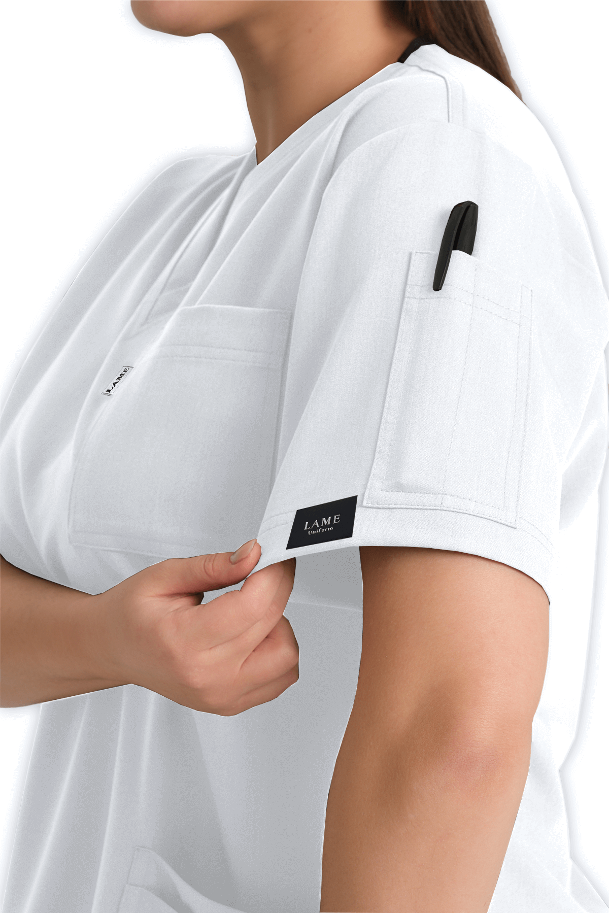 LAME Uniform Kadın Scrubs Üst 5–Cepli – Beyaz