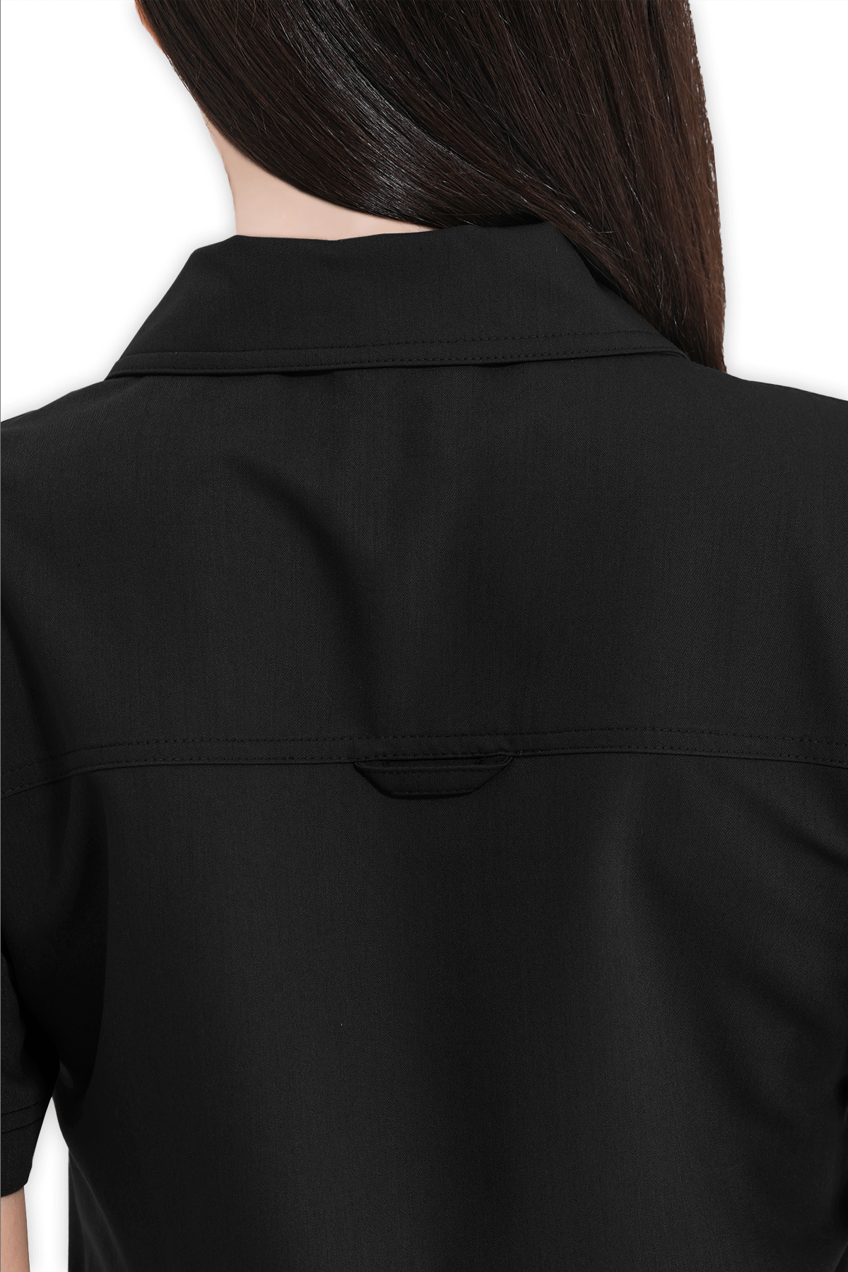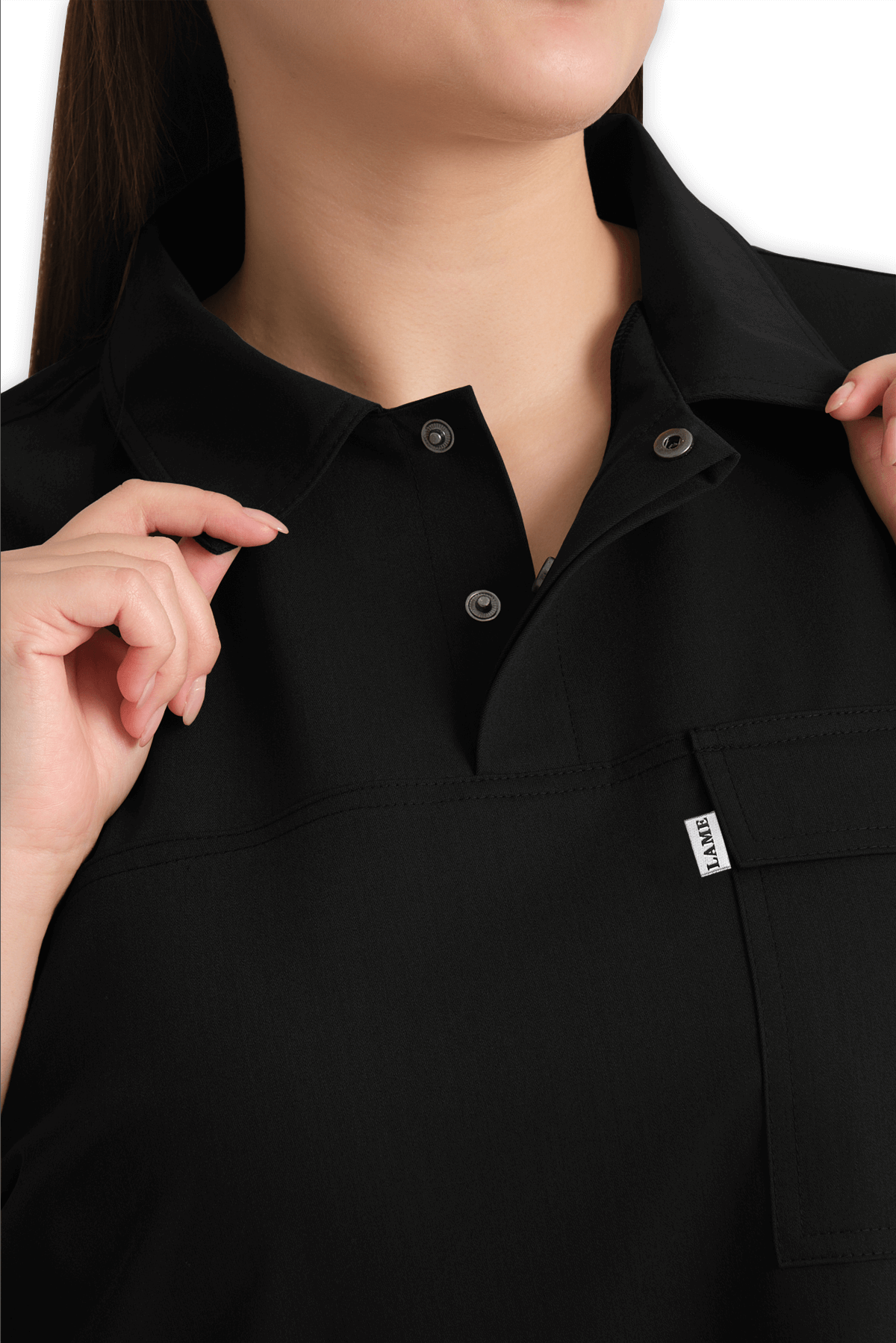 LAME Uniform Kadın Scrubs Üst Polo Yaka – Siyah